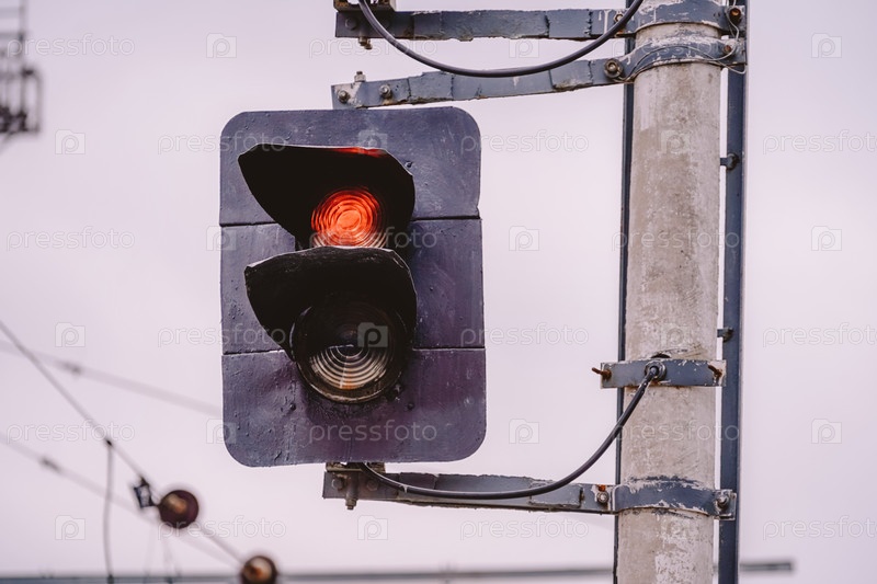 Железнодорожный светофор с красным светом. Симферополь, Крым