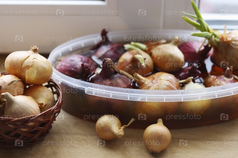 Лук подготовленный для замачивания, для выращивания зеленых стрелок