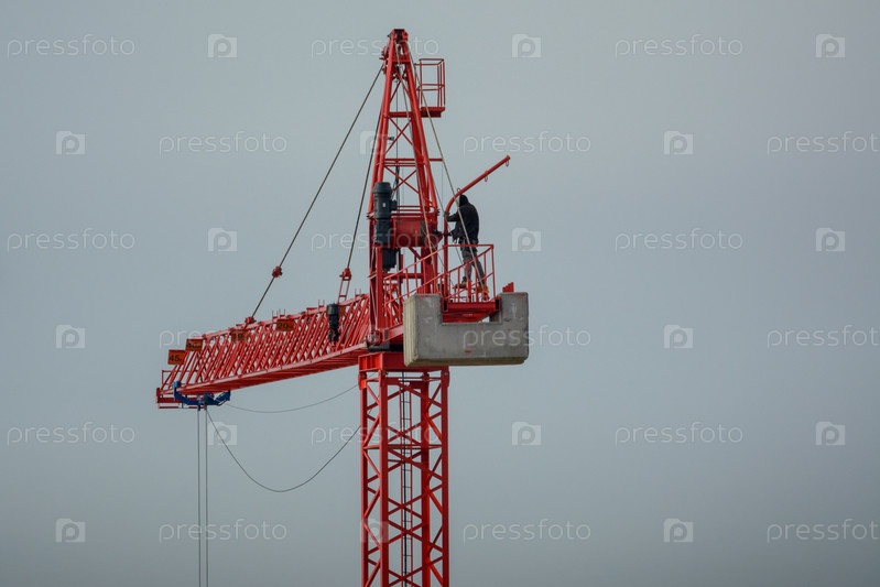 Профессиональный крановщик осматривает кран на большой высоте, опасная концепция работы