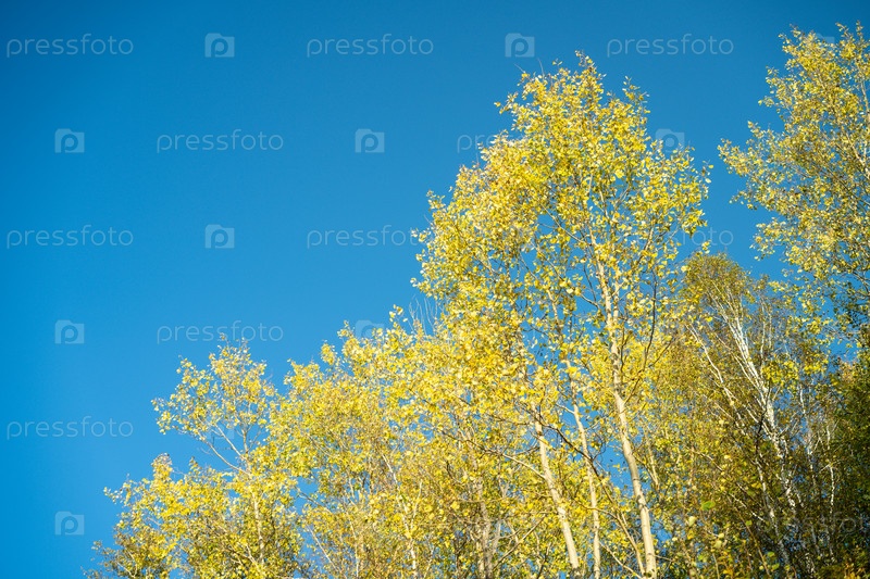 Осенний пейзаж с желтыми листьями деревьев на фоне