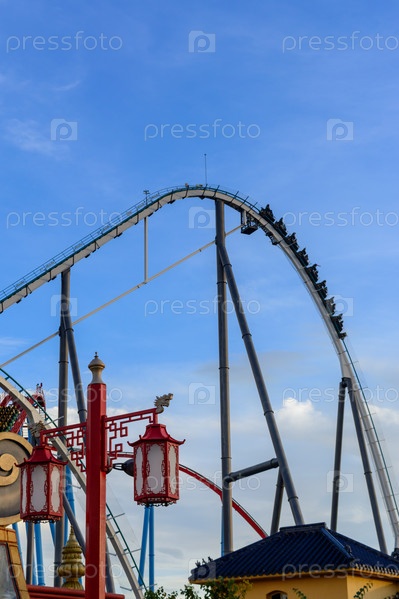 ПОРТ-АВЕНТУРА, ИСПАНИЯ - 31 октября 2021 года. Достопримечательности Шамбала и Дракон-Хан расположены в тематической зоне Китая тематического парка Порт Авентура. Город Салоу, Каталония, Испания