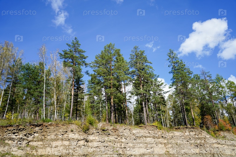 Природный ландшафт с деревьями на фоне голубого неба