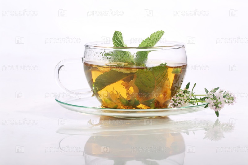 Чай с шалфеем,мятой на белом фоне