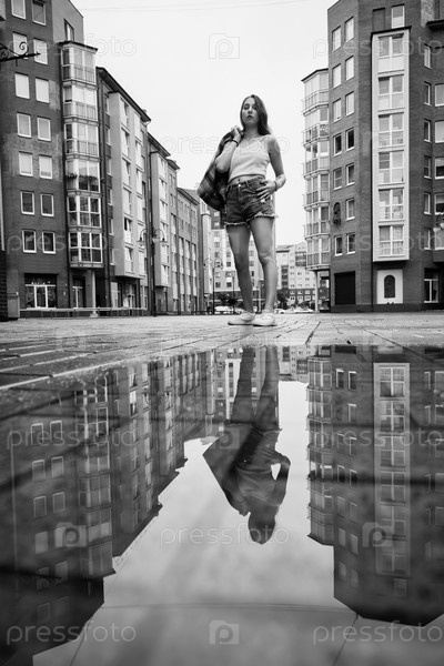 Девушка возле лужи
