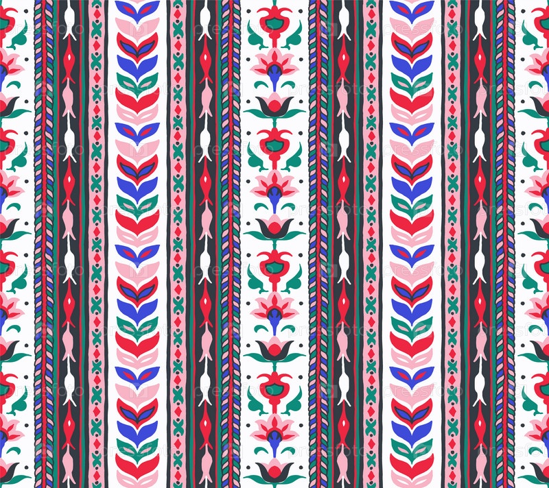 Геометрический дамасский орнамент. Икат границы. Этническая вышивка с листьями и монограммами. Племенная векторная текстура. Бесшовный народный узор в ацтекском стиле. Индийский, скандинавский, цыганский, мексиканский, африканский ковер