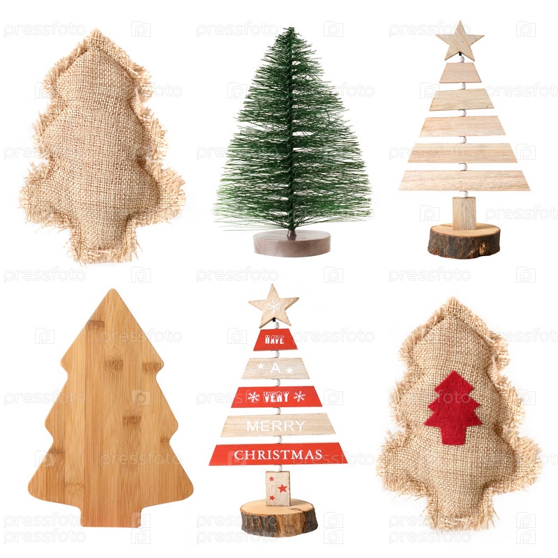 Различные рождественские украшения, звезда, снежинка, рога, изолированные на белом фоне