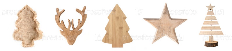 Различные рождественские украшения, звезда, снежинка, рога, изолированные на белом фоне