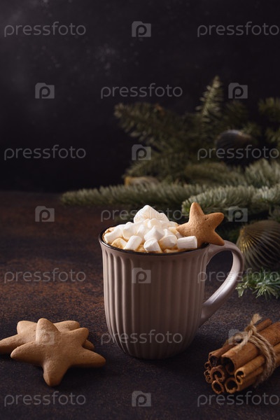 Рождественский кофе с зефиром и печеньем в виде звезд
