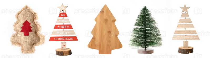 Различный набор елки из натуральных деревянных и традиционных материалов, изолированных на белом фоне