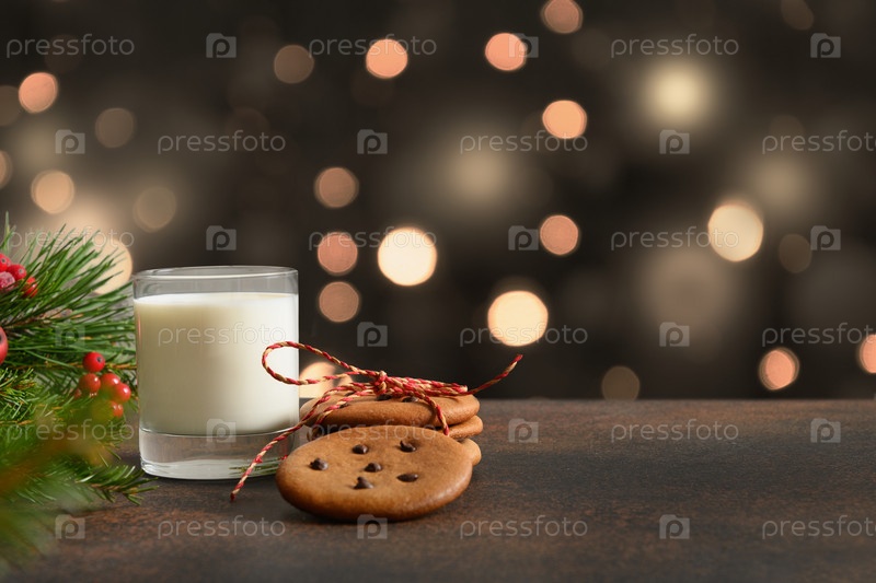 Рождественское печенье и стакан молока для Санты возле елки