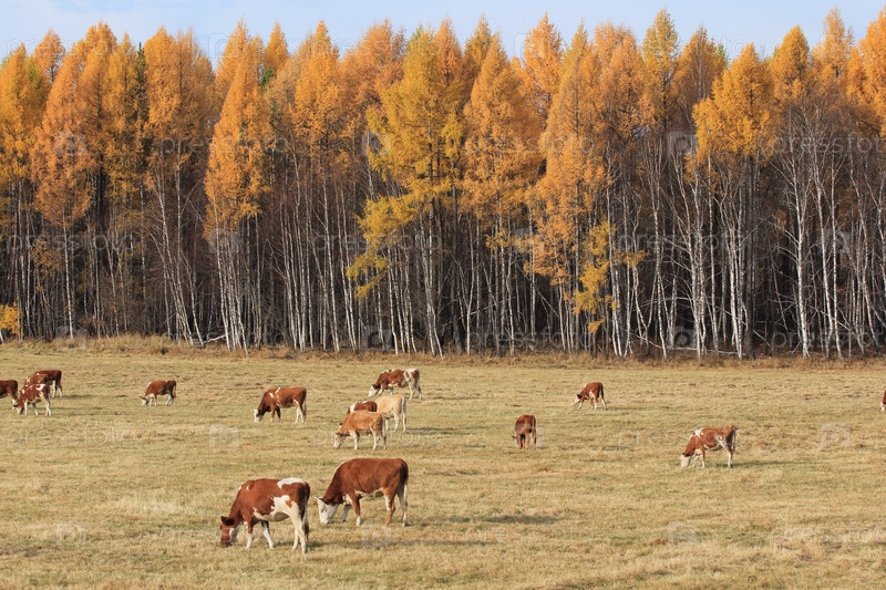 Коровы пасутся осенью