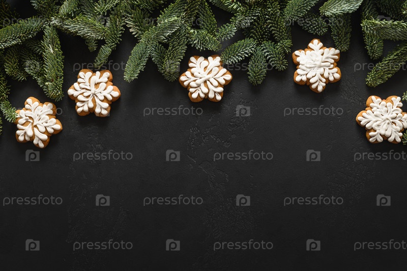 Рождественское глазированное домашнее печенье на черном фоне