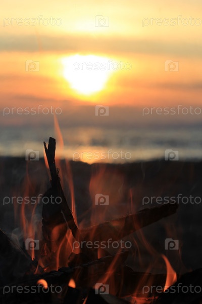 Пламя пожара на закате