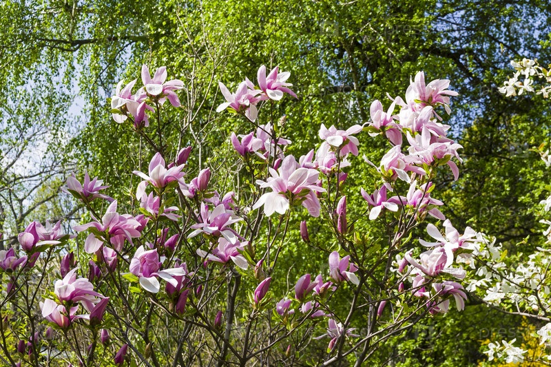 Цветущая лилиецветная магнолия (Magnolia liliiflora) сщкеф 'Сюзанна'. Аптекарский Огород (филиал ботанического сада МГУ), Москва