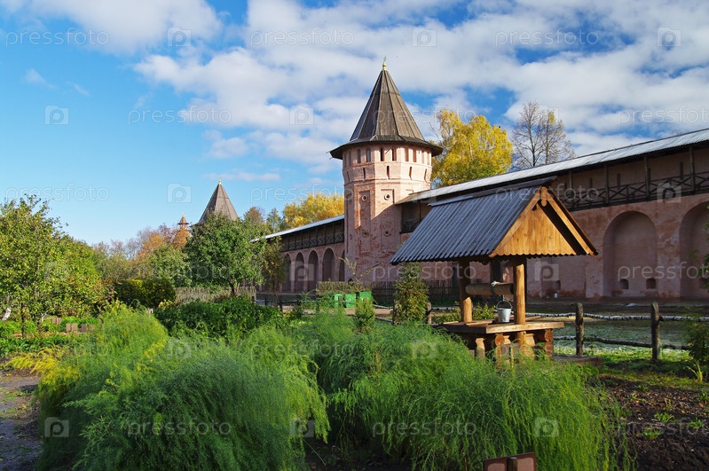 Колодец в монастырском саду. Спасо-Ефимьевский монастырь, Суздаль. Солнечный день в октябре