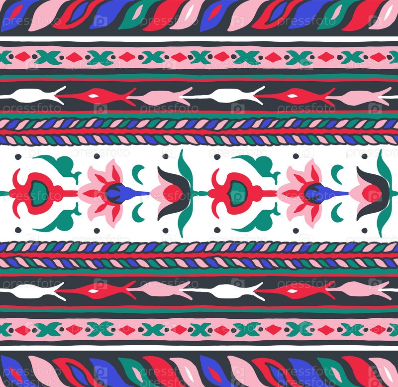 Геометрический фольклорный орнамент икат. Племенная этническая векторная текстура. Бесшовный полосатый узор в стиле ацтеков. Рисунок племенной вышивки. Индийский, скандинавский, цыганский, мексиканский, народный узор