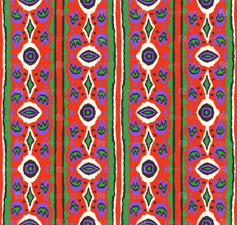 Икат геометрический фольклорный орнамент с бриллиантами. Племенная этническая векторная текстура. Бесшовный полосатый узор в стиле ацтеков. Народная вышивка. Индийский, скандинавский, цыганский, мексиканский, африканский ковер