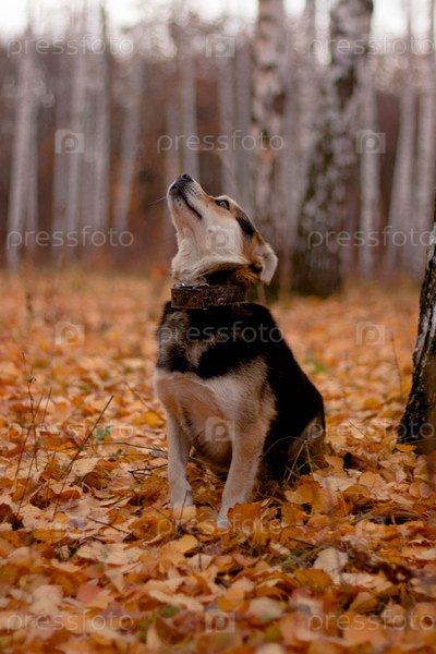Что там? Собака в лесу, смотрит вверх