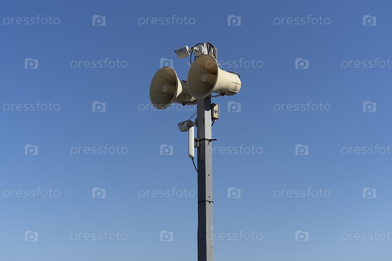 Столб с громкоговорителем на фоне голубого неба