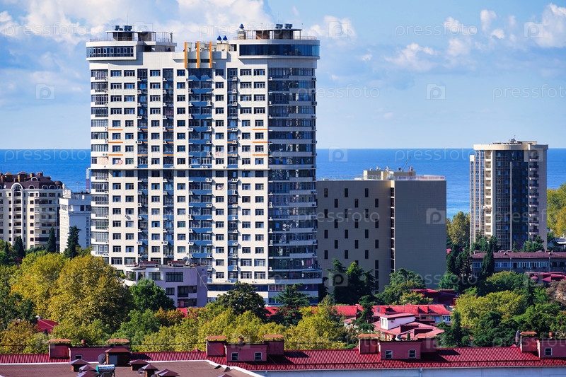 Городской пейзаж с видом на здания и архитектуру. Сочи, Россия