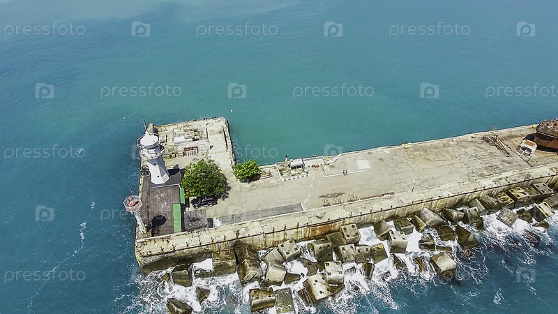 Вид с воздуха на морской пейзаж с видом на маяк. Ялта
