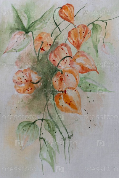 Акварельный рисунок Букет ярких оранжевых физалисов