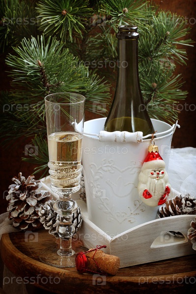 Новогодний натюрморт с шампанским и шоколадом