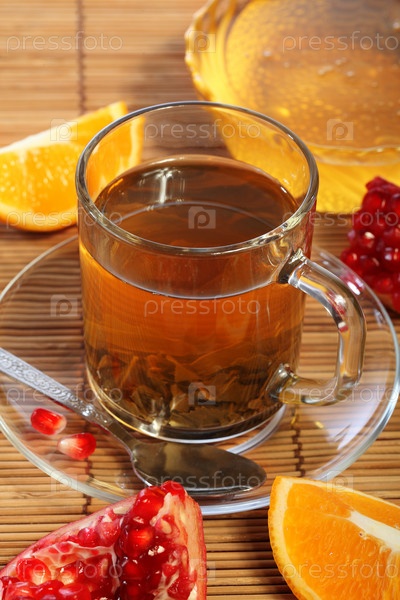 Натюрморт с чаем и грейпфрутом