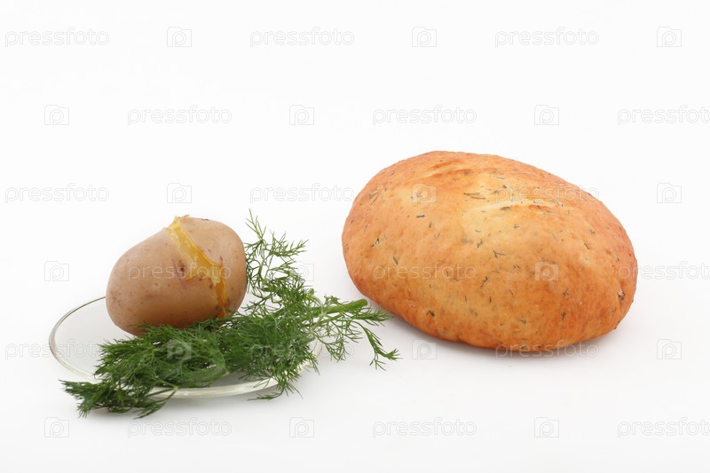 Хлеб с укропом на белом фоне