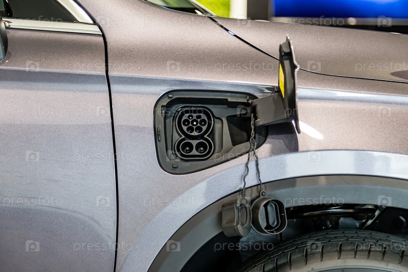 Разъем типа 2 евро для зарядки электромобиля. Зарядный штекер под люком бензобака