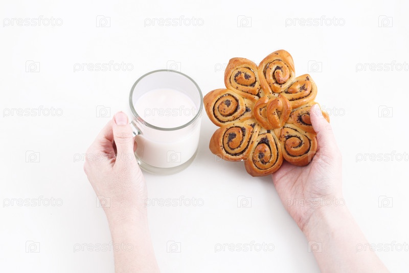 Молоко с выпечкой на белом фоне