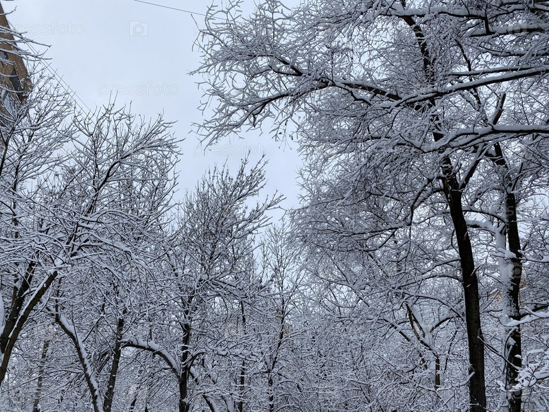 Зима в городском дворе в пасмурный день после снегопада
