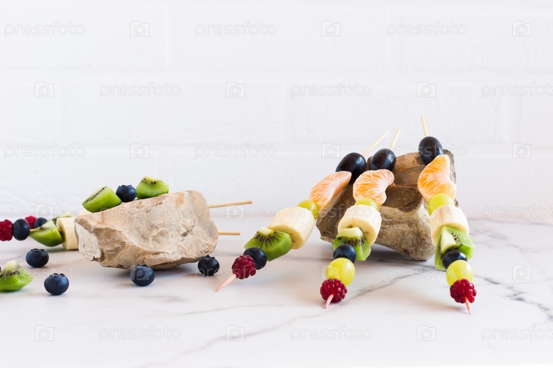 Канапе из сочных фркктов и ягод на камнях, вид сверху