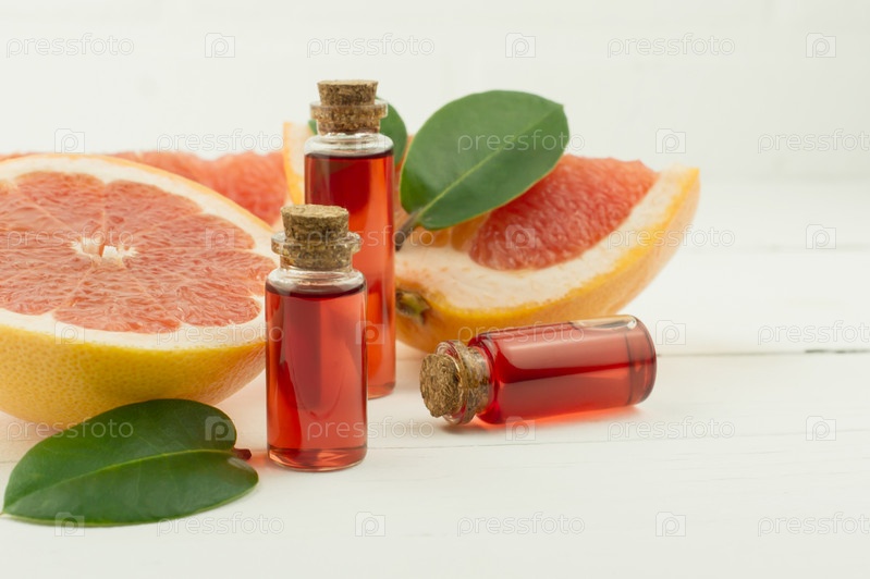 Бутылки с натуральной эссенцией или эфирным маслом грейпфрута для ухода за собой, ароматерапии, спа-концепции