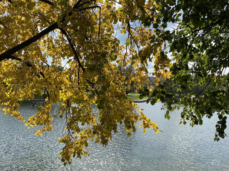 Осень в городском парке в сухой солнечный день