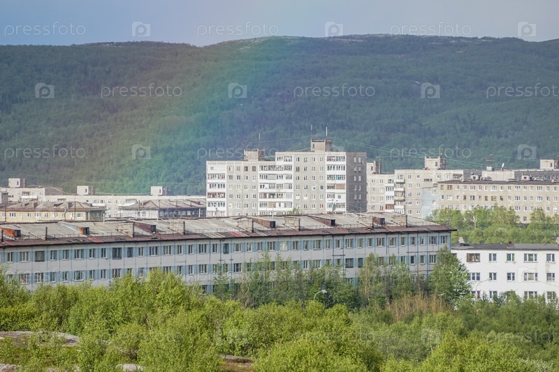 Радуга на фоне городского пейзажа
