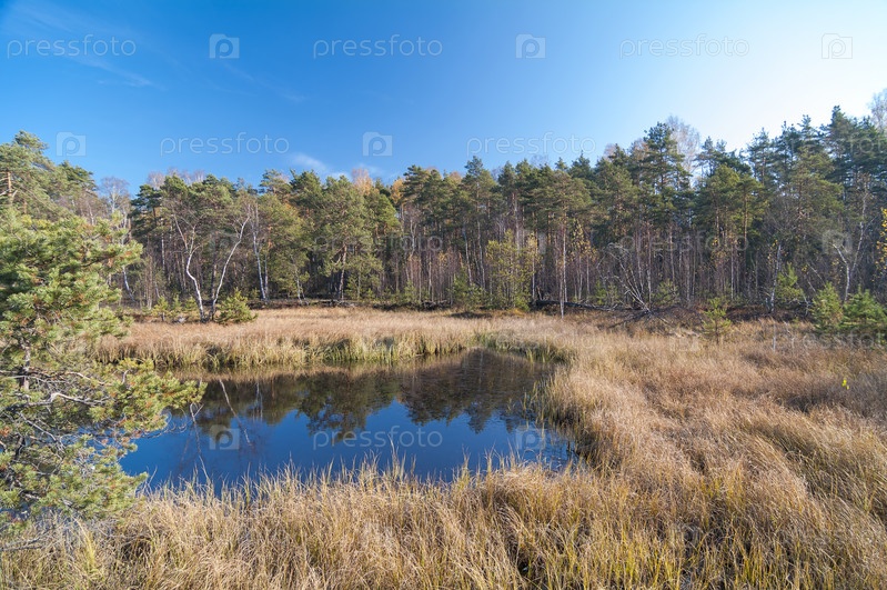 Осень на торфяном болоте. Солнечный день в конце октября. Ближнее Подмосковье