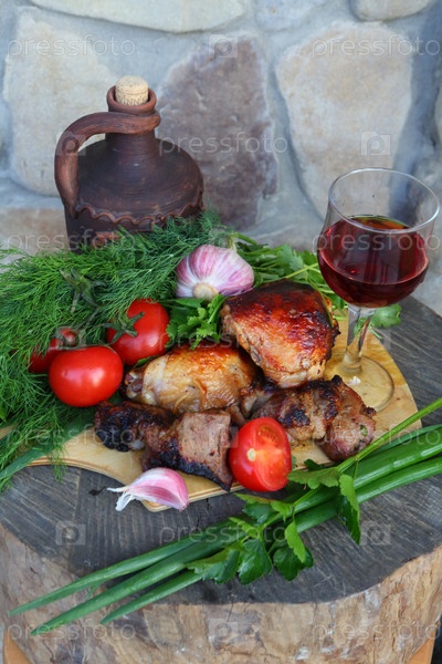 Шашлыки с красным вином и овощами