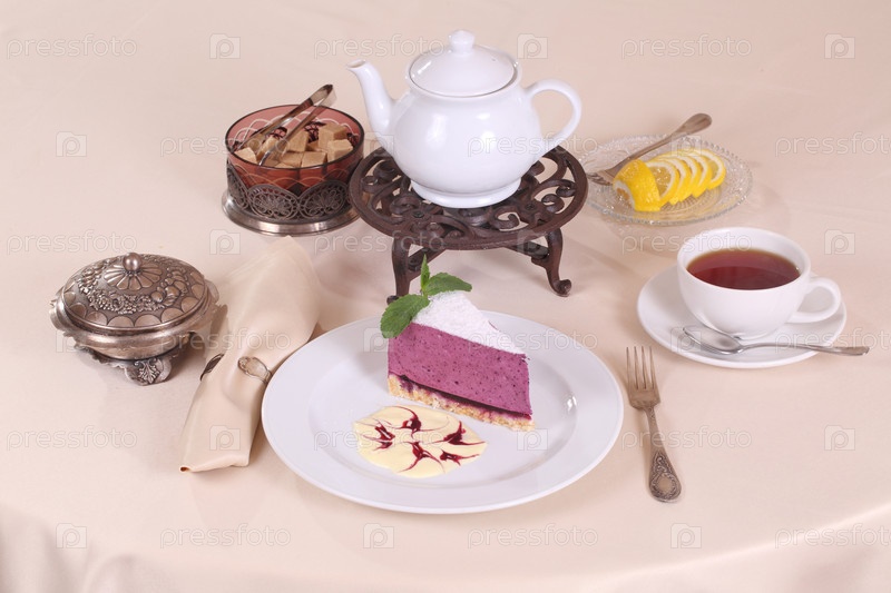 Ягодный торт с чаем с мятой и лимоном