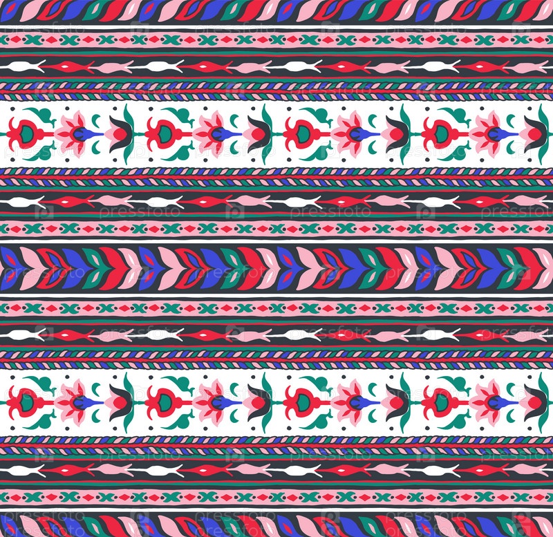 Геометрический фольклорный орнамент икат. Племенная этническая векторная текстура. Бесшовный полосатый узор в стиле ацтеков. Рисунок племенной вышивки. Индийский, скандинавский, цыганский, мексиканский, народный узор