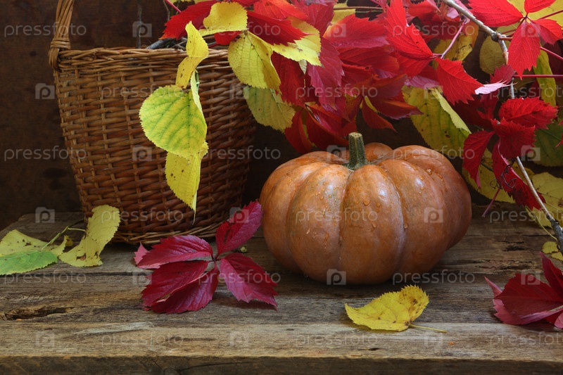 Натюрморт с тыквой на деревянном столе
