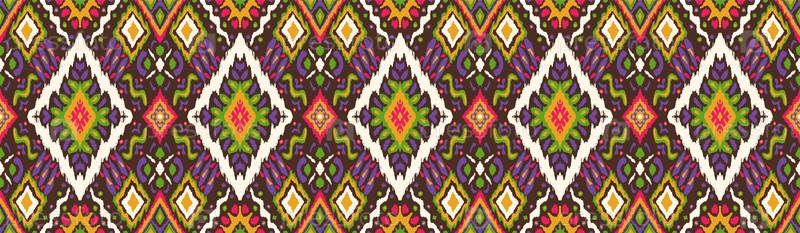 Икат геометрический фольклорный орнамент с бриллиантами. Племенная этническая векторная текстура. Бесшовный полосатый узор в стиле ацтеков. Народная вышивка. Индийский, скандинавский, цыганский, мексиканский, африканский ковер
