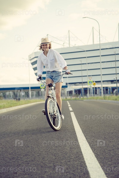 Молодая женщина на велосипеде