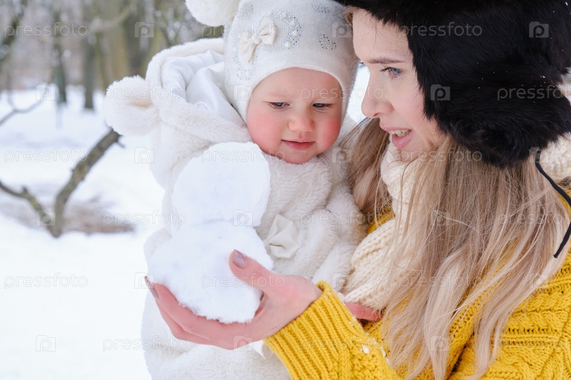Играет со снеговиком
