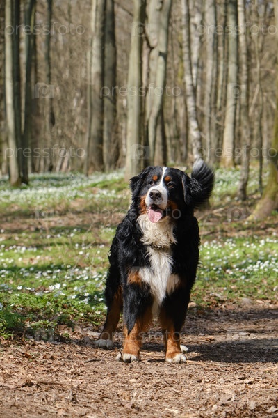 Собака в весенних цветах