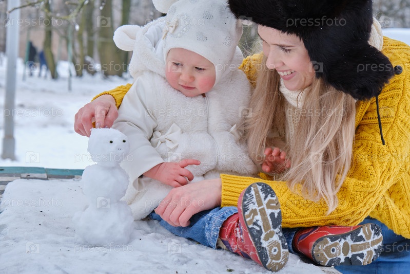 Играет со снеговиком