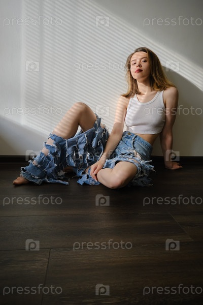 Женщина в рваных джинсах