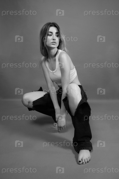 Женщина в рваных джинсах