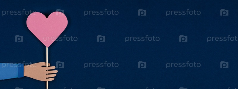 Рука держит бумажное сердце оригами. открытка на День святого Валентина, резка бумаги. 3D-бумага и стиль оригами