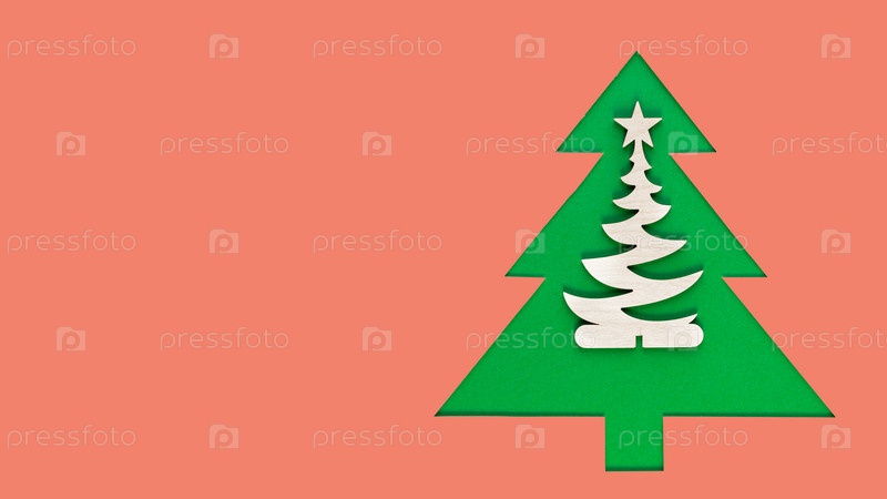 Рождественская елка вырезана из бумаги на розовом фоне. Длинный широкий баннер